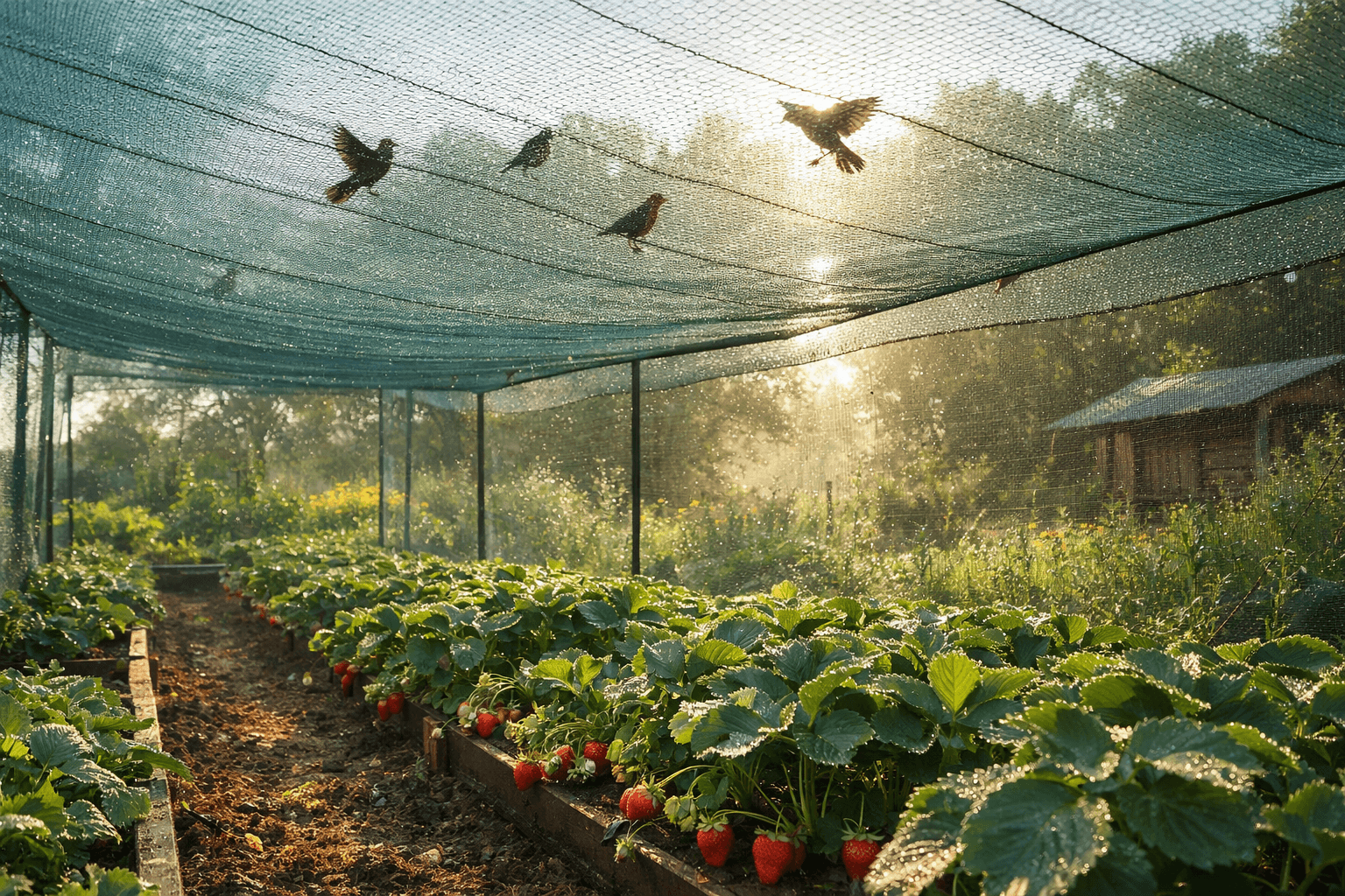 Contribuția cea mai evidentă este cea mecanică. O plasă întinsă deasupra unui strat de căpșuni, de exemplu, îi oprește pe grauri și mierle să ajungă direct la fruct. E aproape banal să spui asta, dar banalul e adesea exact ce funcționează.