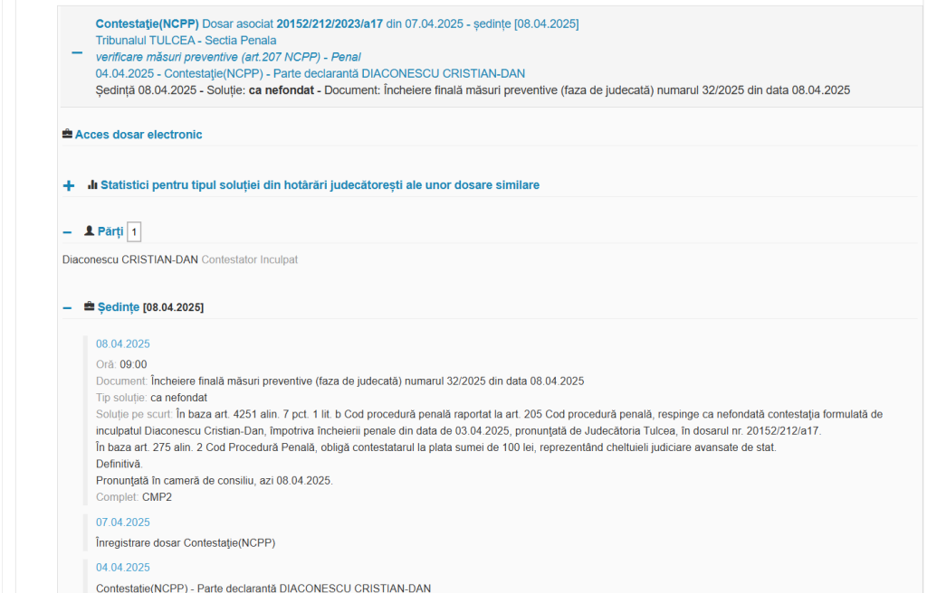 Dosarul „Sex cu minore” al lui Dan Diaconescu se află într-o situație de impas la Tribunalul Tulcea, fără progrese notabile în ultimele luni. Deși la început cazul a captat atenția publicului și a mass-media, în prezent nu există informații noi despre avansarea procedurilor legale. Termenele stabilite au fost amânate în mod repetat, iar documentele necesare pentru continuarea procesului nu au fost încă complet prezentate. Această inactivitate în dosar a cauzat frustrări atât în rândul partilor implicate, cât și al celor care urmăresc cazul. Fără o decizie clară, dosarul rămâne blocat în sistemul juridic, fără o perspectivă bine definită asupra momentului când va fi rezolvat.